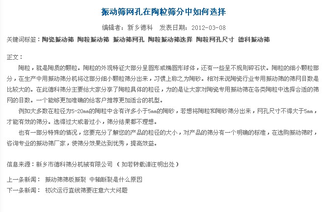 本站關鍵詞:振動篩,新聞抄襲,振動篩分,同行抄襲,德科篩分